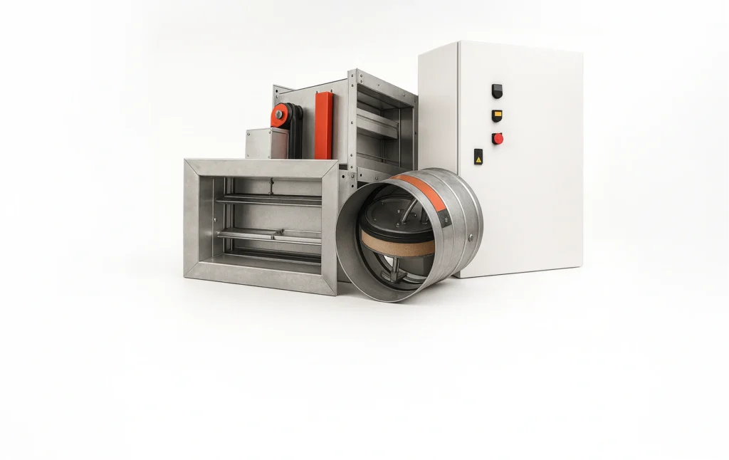 Systemy oddymiania służą do usuwania dymu i ciepła w przypadku pożaru, ograniczając rozprzestrzenianie się ognia oraz poprawiając warunki ewakuacji. W ich skład wchodzą m.in. klapy oddymiające, urządzenia sterujące oraz instalacje oddymiające. - Bierne systemy przeciwpożarowe i zamknięcia ogniowe