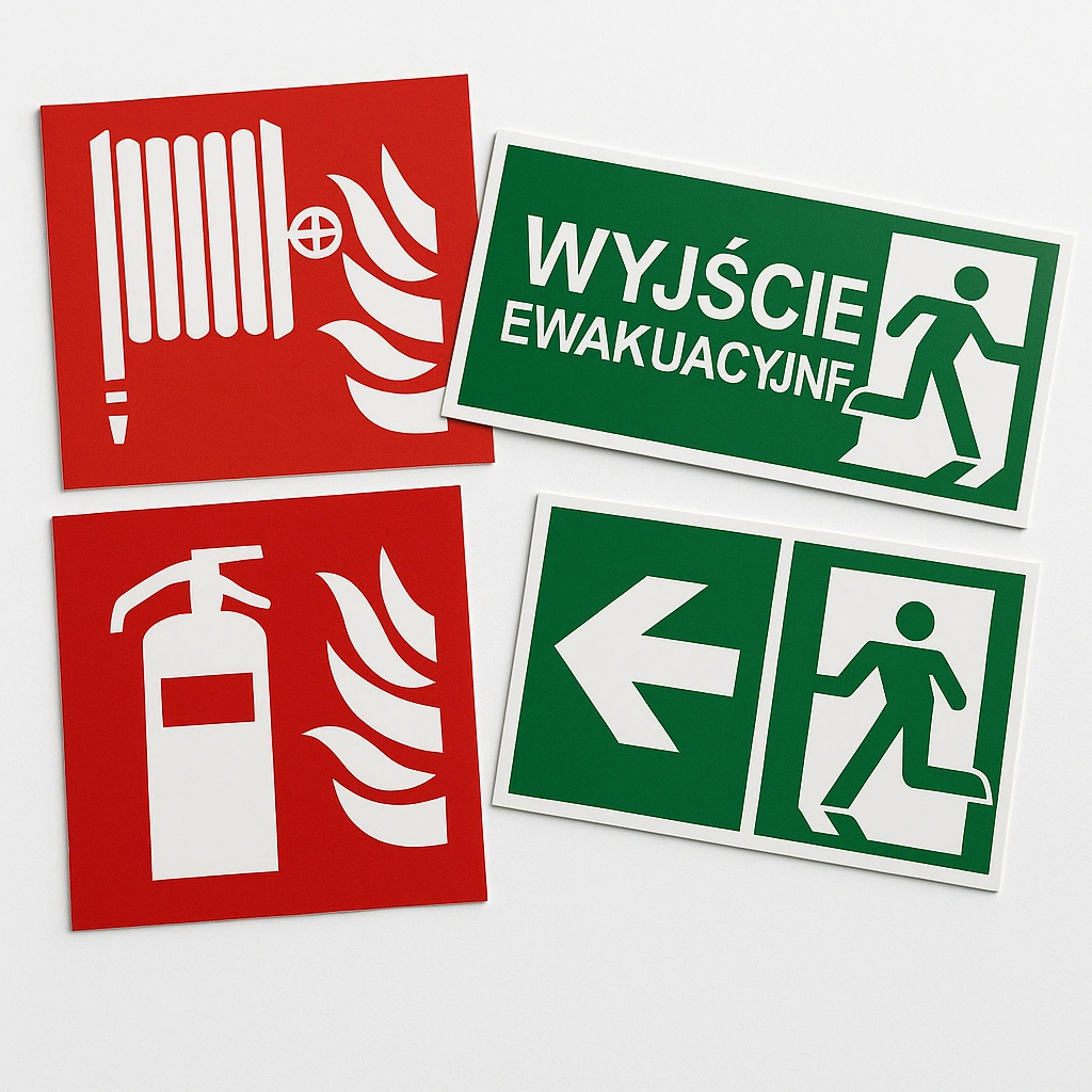 Znaki ochrony przeciwpożarowej i ewakuacyjne to podstawowe wyposażenie każdego obiektu. Oznaczają drogi ewakuacyjne, lokalizację gaśnic, hydrantów czy urządzeń sygnalizacji pożarowej, a także wskazują obszary szczególnego zagrożenia pożarowego. W naszej ofercie znajdują się tablice i oznaczenia spełniające normy PN-EN ISO, dostępne w różnych formatach i wykonaniach, co pozwala na ich dopasowanie do specyfiki budynku.