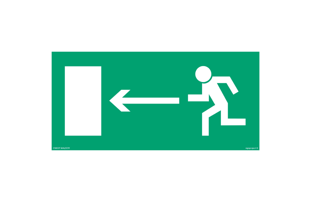 Znak kierunek do wyjścia drogi ewakuacyjnej w lewo AA003