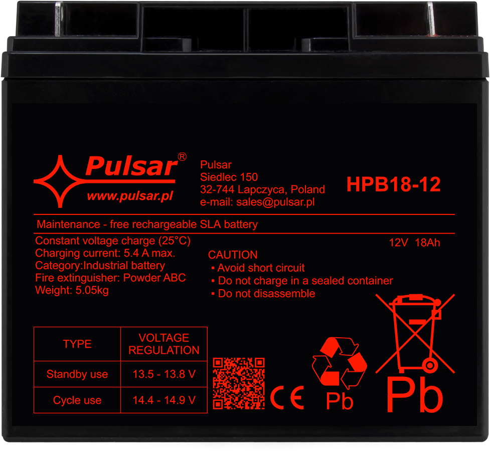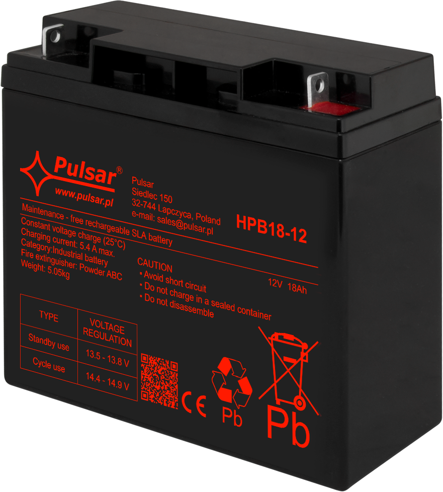 Akumulator z serii HPB marki Pulsar to bezobsługowy VRLA w technologii AGM (Absorbent Glass Mat) do pracy buforowej i cyklicznej. Sprawdza się jako źródło zasilania 12V w systemach CCTV, SSWiN, kontroli dostępu (KD), DSO oraz w zasilaczach buforowych i UPS – gdy wymagane jest podtrzymanie napięcia podczas braku zasilania podstawowego. Seria HPB to produkty spełniające normy branżowe i projektowane do profesjonalnych zastosowań.