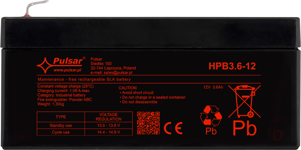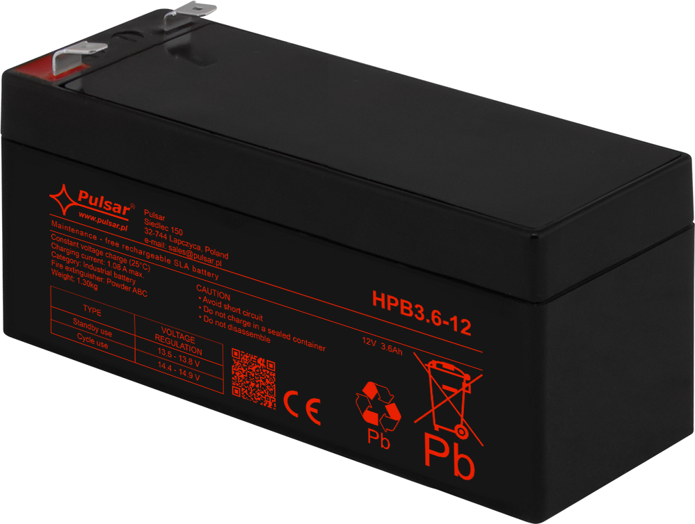 Akumulator z serii HPB marki Pulsar to bezobsługowy VRLA w technologii AGM (Absorbent Glass Mat) do pracy buforowej i cyklicznej. Sprawdza się jako źródło zasilania 12V w systemach CCTV, SSWiN, kontroli dostępu (KD), DSO oraz w zasilaczach buforowych i UPS – gdy wymagane jest podtrzymanie napięcia podczas braku zasilania podstawowego. Seria HPB to produkty spełniające normy branżowe i projektowane do profesjonalnych zastosowań.