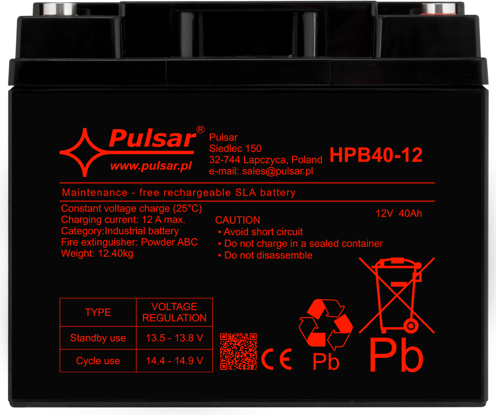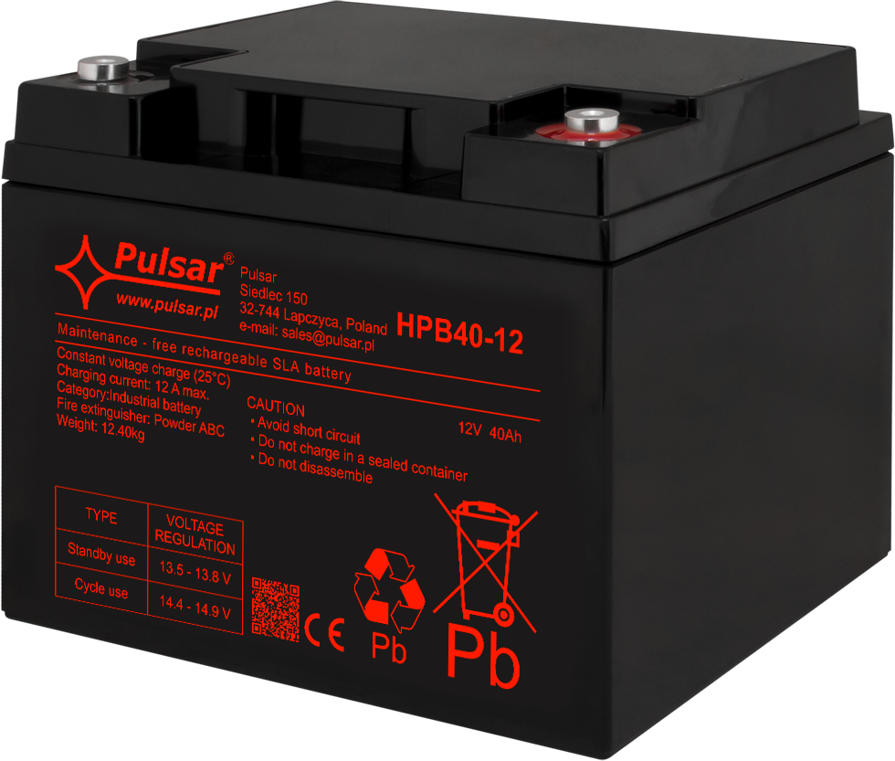 Akumulator z serii HPB marki Pulsar to bezobsługowy VRLA w technologii AGM (Absorbent Glass Mat) do pracy buforowej i cyklicznej. Sprawdza się jako źródło zasilania 12V w systemach CCTV, SSWiN, kontroli dostępu (KD), DSO oraz w zasilaczach buforowych i UPS – gdy wymagane jest podtrzymanie napięcia podczas braku zasilania podstawowego. Seria HPB to produkty spełniające normy branżowe i projektowane do profesjonalnych zastosowań.