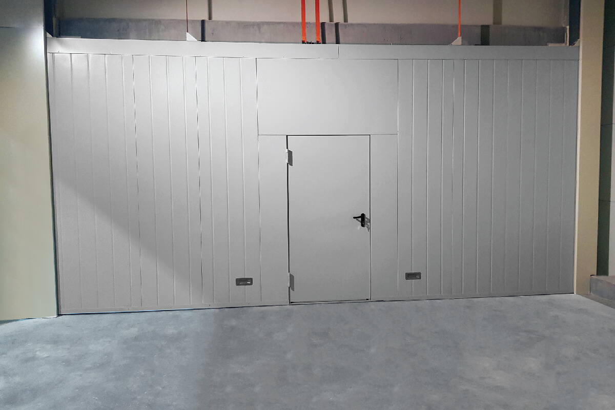 Brama opuszczana przeciwpożarowa wieloskrzydłowa Marc-Ot EI120 Małkowski to nowoczesna, stalowa konstrukcja wieloskrzydłowa o 120-minutowej odporności ogniowej.
