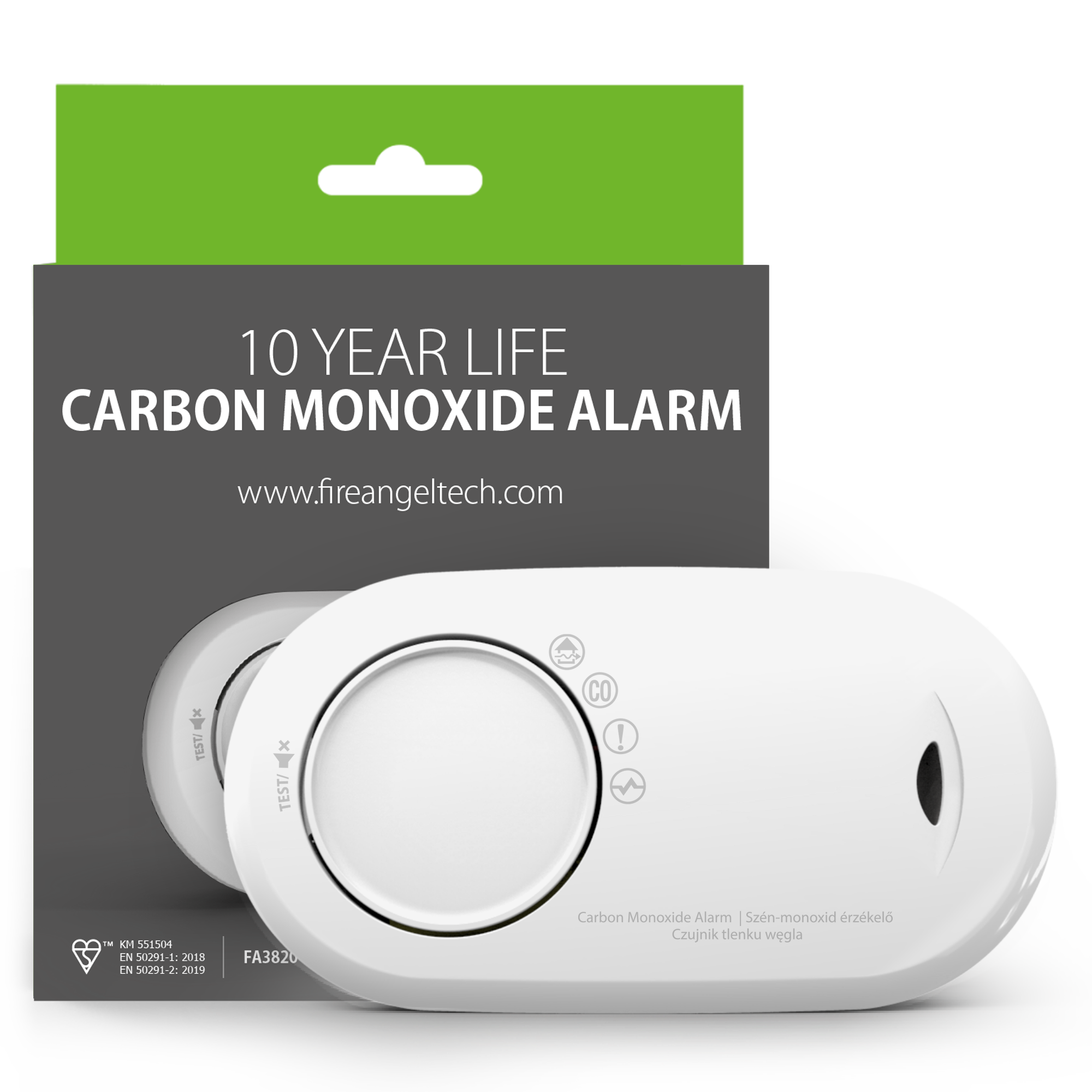 Czujnik tlenku węgla FireAngel FA3820 to kompaktowe urządzenie alarmowe z 10-letnią, wbudowaną baterią litową, zaprojektowane do wieloletniej ochrony użytkowników przed niebezpiecznymi stężeniami CO. Dzięki zaawansowanemu sensorowi elektrochemicznemu oraz inteligentnemu algorytmowi detekcji model FA3820 zapewnia szybką i stabilną reakcję nawet przy niskich poziomach tlenku węgla, gwarantując wysoki poziom bezpieczeństwa w pomieszczeniach stacjonarnych i mobilnych.