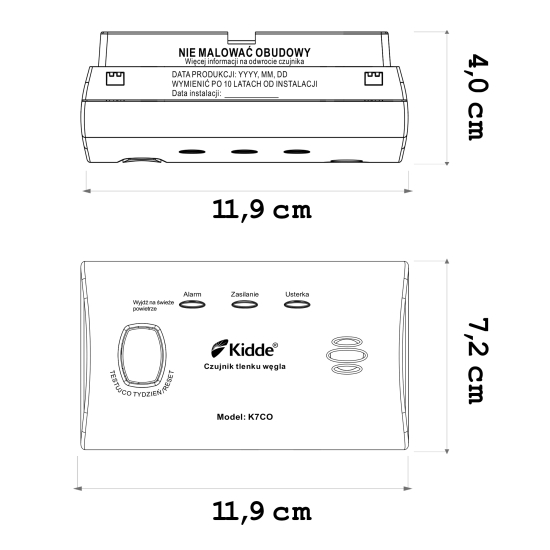 Czujnik tlenku węgla (czujnik czadu) K7CO, KIDDE to autonomiczny detektor CO z trwałym sensorem elektrochemicznym, alarmem 85 dB, sygnalizacją LED i funkcją pamięci alarmu. Wzmocniona konstrukcja umożliwia zastosowanie w domach, kamperach, przyczepach i na łodziach.