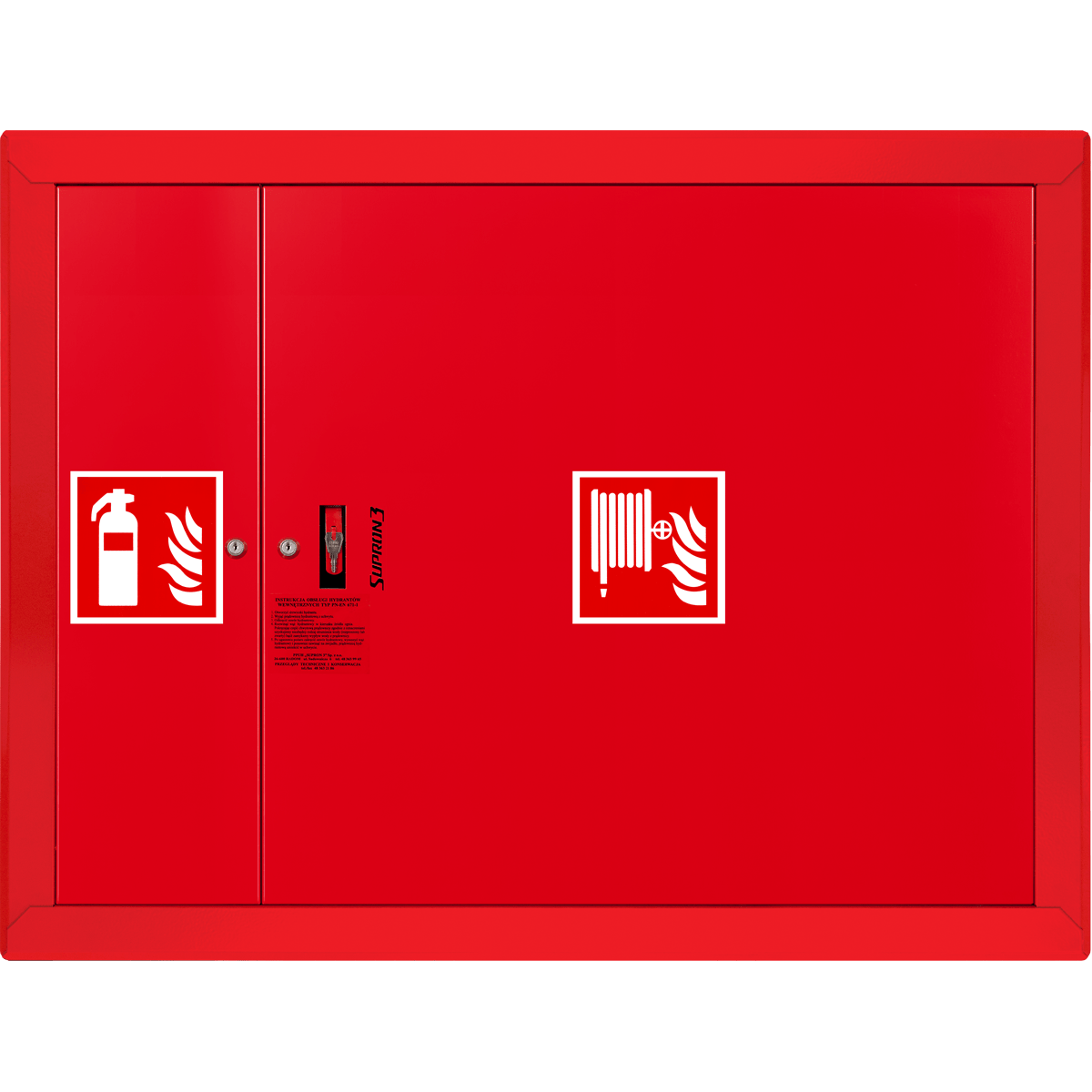 Szafka hydrantowa wykonana jest z blachy stalowej ocynkowanej i malowanej proszkowo farbą poliestrową fasadową (RAL 3000 – czerwony lub RAL 9003 – biały). Kryte zawiasy pozwalają otworzyć drzwi na 180°, co zapewnia wygodny dostęp do wyposażenia. Hydrant pracuje w zakresie ciśnienia od 0,2 do 0,7 MPa i spełnia wymagania normy PN-EN 671-1, gwarantując niezawodne działanie w sytuacjach zagrożenia.