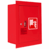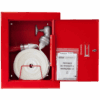 Szafka hydrantowa wykonana jest z blachy stalowej ocynkowanej, malowanej proszkowo farbą poliestrową fasadową (w kolorze czerwonym RAL 3000 lub białym RAL 9003). Kryte zawiasy pozwalają otworzyć drzwi na 180°, zapewniając łatwy dostęp do całego wyposażenia. Hydrant DN52 pracuje w zakresie ciśnienia od 0,2 do 0,7 MPa i spełnia wymagania normy, co gwarantuje jego skuteczność i bezpieczeństwo użytkowania.