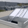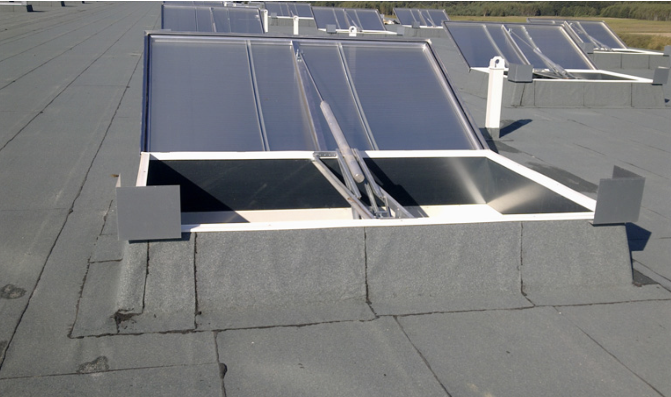 - Konstrukcja jednoskrzydłowa, do montażu na dachach płaskich (do 15° nachylenia).