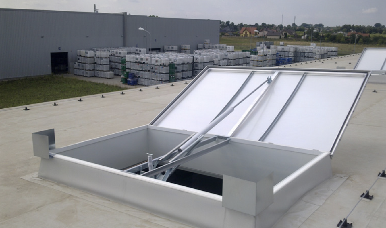 - Oddymianie i przewietrzanie – klapy dymowe służą do odprowadzania dymu na zewnątrz, ograniczając straty materialne i zapewniając bezpieczną ewakuację.