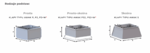 Oprócz klap na podstawach prosto-skośnych posiadamy również klapy na podstawach prostych i skośnych. Światło otworu montażowego pozostaje we wszystkich przypadkach takie samo.