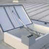 Klapa dymowa PS2 1-skrzydłowa CO2 oddymiająco-przewietrzająca w wersji pneumatycznej CO₂, przeznaczona do dachów płaskich (do 15°). Skutecznie odprowadza dym, ciepło i gazy w pożarze; na co dzień może doświetlać i wietrzyć pomieszczenia. Podstawa prosto-skośna PS2 z ocynkowanej stali (wys. 300–1000 mm) oraz szeroki wybór pokryć (w tym NRO Kera Fire Protect) pozwalają dopasować izolacyjność i przepuszczalność światła. Nożycowy siłownik uruchamiany CO₂ nie wystaje w świetle otworu, co zwiększa bezpieczeństwo ewakuacji.