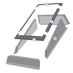 W zestawie znajdują się kątowniki montażowe, które ułatwiają prawidłowe osadzenie okna. Drewniana obudowa po zamontowaniu wymaga wykonania szczelnej izolacji i połączenia z istniejącym pokryciem dachowym zgodnie ze sztuką dekarską.