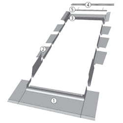 Kołnierz EGS do pokryć płaskich zapewnia szczelne połączenie okna oddymiającego z pokryciem z papy, gontu bitumicznego lub łupka. Dla spadków dachów 25°–90°, wersja montażu N.
