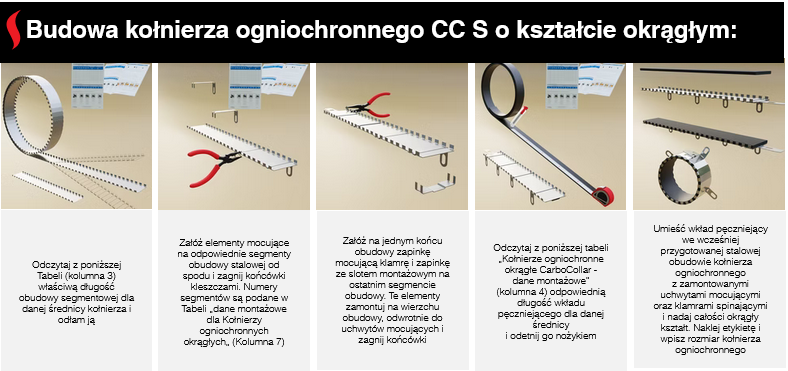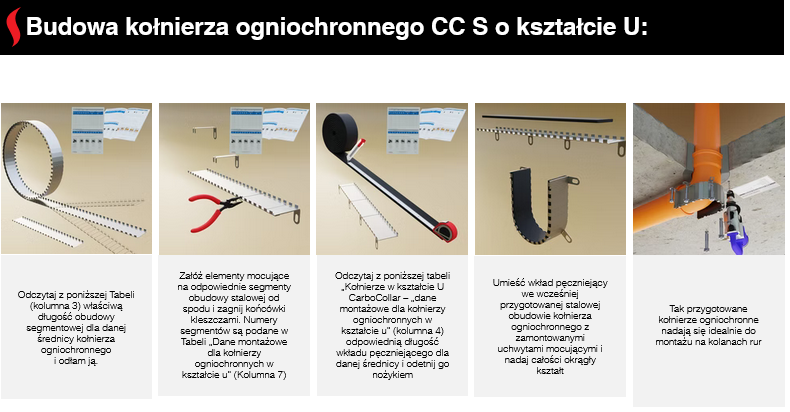Kołnierz ogniochronny CarboCollar S to profesjonalny system zabezpieczenia ppoż firmy Carboline Polska, zaprojektowany do ogniochronnego uszczelniania przejść instalacyjnych rur palnych i niepalnych w ścianach oraz stropach. Wyrób w formie gotowego zestawu składa się z wielosegmentowej stalowej osłony wykonanej z nierdzewnej blachy stalowej oraz jednego lub kilku wkładów pęczniejących, które w warunkach pożaru zwiększają swoją objętość i skutecznie zamykają otwór wokół rury lub wiązki kabli. Dzięki temu kołnierze CarboCollar S ograniczają rozprzestrzenianie się ognia i dymu, spełniając najwyższe wymagania ochrony przeciwpożarowej.