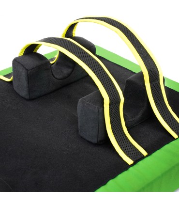 Materac ewakuacyjny Prime charakteryzuje się lekką i elastyczną konstrukcją, która pozwala na szybkie rozłożenie i łatwe przechowywanie. Trudnopalne i bakteriobójcze materiały zapewniają bezpieczeństwo i higienę użytkowania. Dodatkowa kostka stabilizująca głowę oraz płytka usztywniająca zwiększają komfort i bezpieczeństwo transportowanej osoby. Elementy odblaskowe poprawiają widoczność w warunkach ograniczonej widoczności, a uchwyty umożliwiają pewny chwyt dla operatorów podczas ewakuacji.