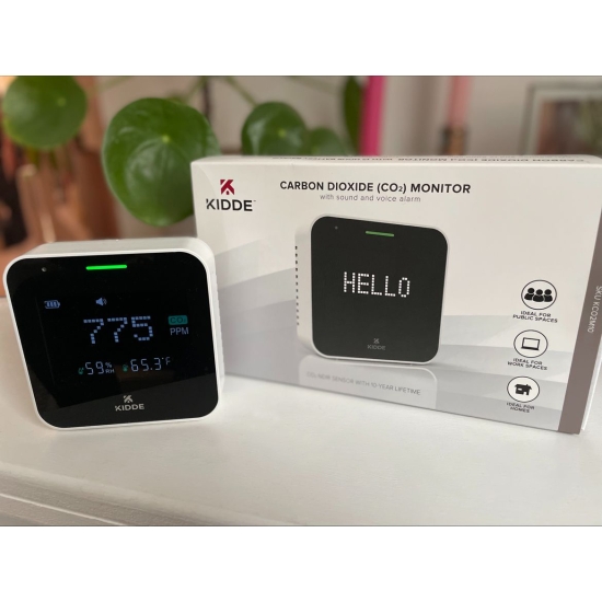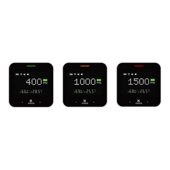 Miernik parametrów powietrza KCO2M10, KIDDE to wielofunkcyjny miernik jakości powietrza z czujnikiem NDIR, pomiarem CO₂, temperatury i wilgotności, kolorowym wskaźnikiem jakości powietrza oraz 7-dniową historią odczytów. Idealny do mieszkań, biur i szkół.