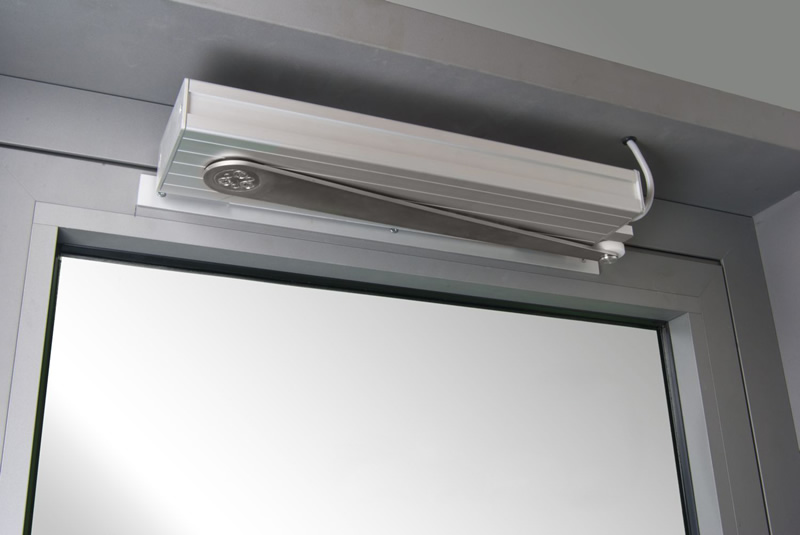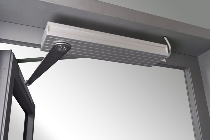 Napęd ramieniowy BS, AFG to kompaktowy siłownik do drzwi napowietrzających stosowanych w systemach oddymiania. Zapewnia duży kąt otwarcia, płynne działanie, skok 616 mm i możliwość pracy w kierunku lewym lub prawym. Dzięki wysokiej sprawności, niskim poborze prądu i precyzyjnemu sterowaniu idealnie sprawdza się w drzwiach otwieranych automatycznie podczas pożaru.