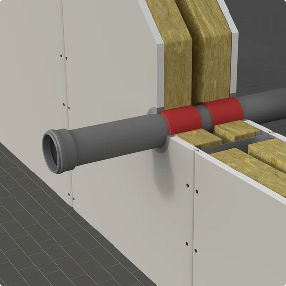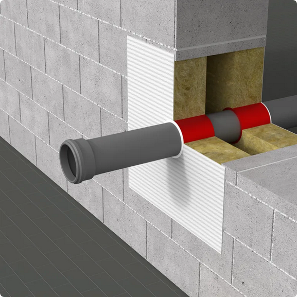 Opaska ogniochronna INTU FR WRAP to skuteczne i szybkie w montażu rozwiązanie do zabezpieczania przejść instalacyjnych rur w przegrodach ogniowych. Dzięki kompaktowej budowie i wysokiej klasie odporności ogniowej produkt idealnie sprawdzi się w instalacjach sanitarnych, wentylacyjnych i grzewczych.