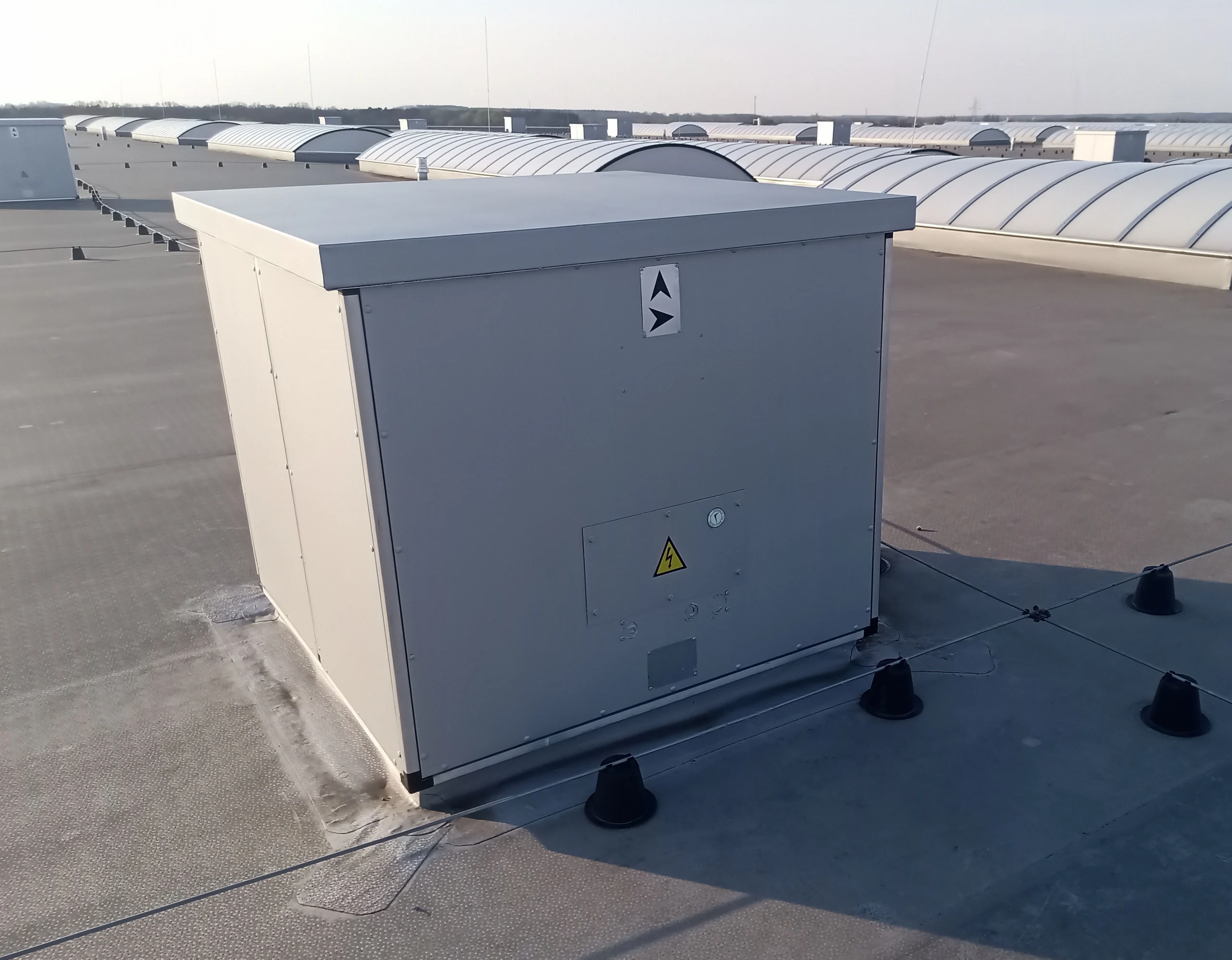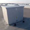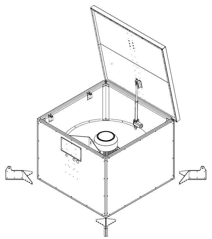Osiowy wentylator oddymiający mcr MONSUN T-L to urządzenie przeznaczone do odprowadzania dymu, gorącego powietrza i gazów pożarowych z pomieszczeń objętych pożarem, wyposażone dodatkowo w obudowę skrzynkową z otwieraną pokrywą sterowaną siłownikiem. Konstrukcja typu Lobby umożliwia montaż na zewnątrz budynku oraz zapewnia izolację termiczną, co ogranicza straty ciepła i zwiększa bezpieczeństwo eksploatacji w warunkach zimowych.