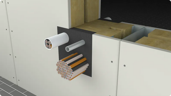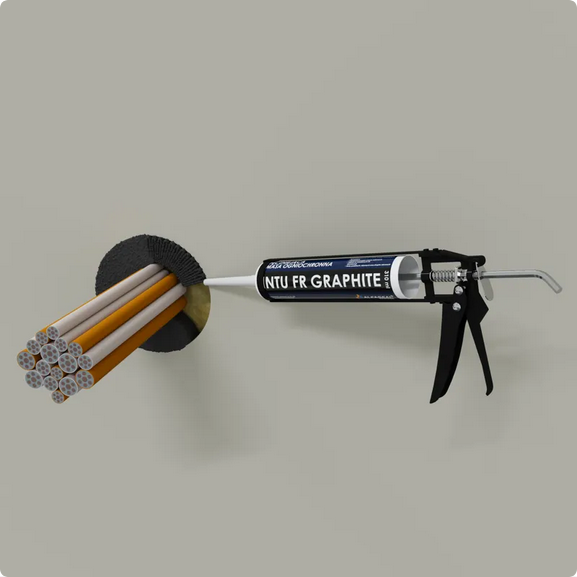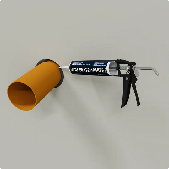 INTU FR GRAPHITE jest przeznaczona do przywracania odporności ogniowej ścian i stropów, gdy przez przegrodę przeprowadzane są przejścia instalacyjne rur palnych oraz kabli.