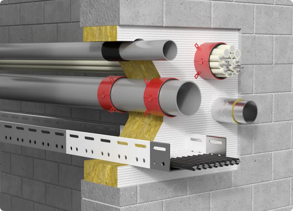- Zabezpieczenia szczelin dylatacyjnych w przegrodach ogniowych oraz przepustów kablowych w stropach i ścianach.