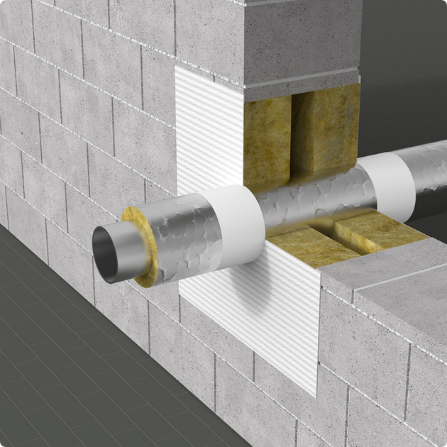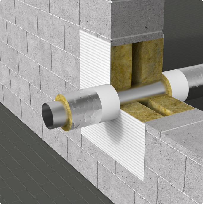 - W przypadku rur niepalnych należy wykonać izolację z lameli z wełny mineralnej, pokrytą farbą ogniochronną ALFA FR COAT A.