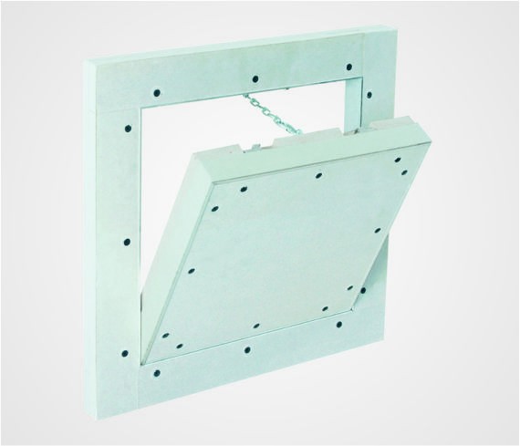 Obie ramy klapy rewizyjnej składają się z czterech części połączonych ze sobą specjalną metodą spawania, co gwarantuje trwałość i wysoką sztywność konstrukcji. Wkładka z płyty gipsowo-kartonowej typu GKF o grubości 30 mm (EI60) stanowi rdzeń klapy, a całość uzupełnia piankowa uszczelka przeciwpożarowa, wypełniająca szczelinę o szerokości 2,5 mm na całym obwodzie skrzydła drzwiowego. Dla bezpieczeństwa klapy wyposażono w dwa zabezpieczenia przed wypadnięciem w postaci łańcuszków, które należy zawiesić po każdym otwarciu skrzydła drzwiowego.