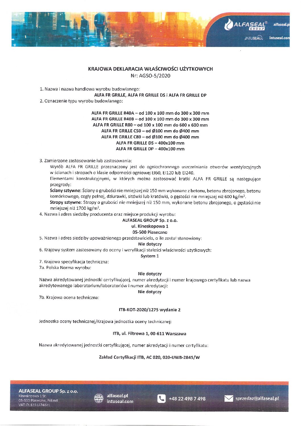 - Deklaracja Właściwości Użytkowych oraz Krajowa Ocena Techniczna ITB – dokumenty w załącznikach.