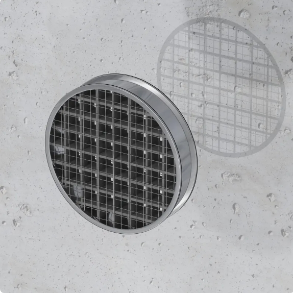 Okrągła, pęczniejąca kratka wentylacyjna ALFA FR GRILLE (Alfaseal) zamyka otwór wentylacyjny w czasie pożaru: element ekspandujący pęcznieje powyżej ~140°C, blokując przejście ognia i gorących gazów. Kratka utrzymuje przepływ powietrza w eksploatacji, a podczas pożaru przywraca ogniochronność przegrody do klasy EI60 lub EI120 – zależnie od doboru.
