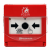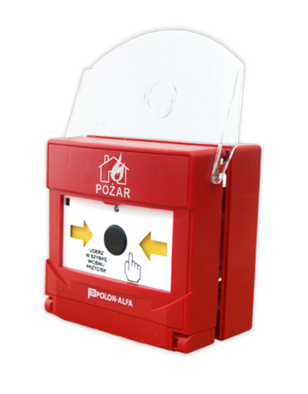 Wyposażony w dwukolorową diodę LED, umożliwia sygnalizację alarmu pożarowego (kolor czerwony) oraz stanów uszkodzeń lub testów (kolor żółty). Obudowa z czerwonego tworzywa o wysokiej odporności mechanicznej oraz przezroczysta szybka zabezpieczająca chronią przed przypadkowym uruchomieniem urządzenia.