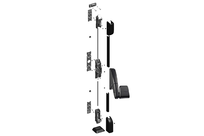 Zestaw RYG-2PKT marki AFG służy do ryglowania skrzydeł w drzwiach dwuskrzydłowych, zapewniając ich bezpieczne i stabilne domknięcie. Mechanizm kontroluje pozycję skrzydeł i umożliwia ich pewne zaryglowanie, co jest kluczowe w drzwiach przeciwpożarowych, napowietrzających oraz technicznych. Solidna konstrukcja gwarantuje niezawodność i prawidłowe działanie w profesjonalnych instalacjach drzwiowych.