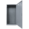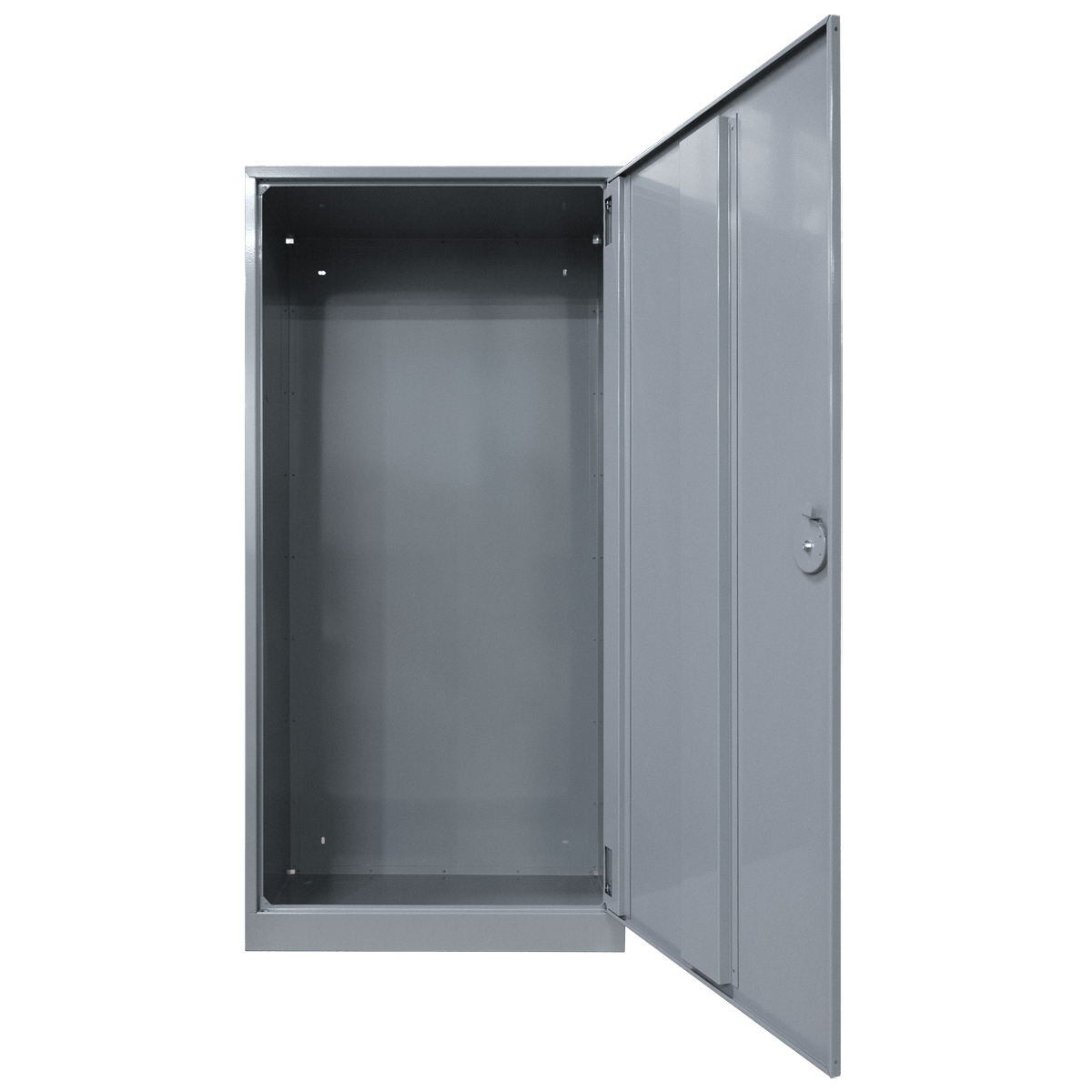 Szafa do bezpiecznego przechowywania krzesła ewakuacyjnego. Korpus wykonany z blachy ocynkowanej, malowanej proszkowo farbą poliestrową fasadową (typ Facade) – rozwiązanie odporne na warunki atmosferyczne i promieniowanie UV. Drzwi pełne, standardowy kolor szary RAL 7045, zamek EURO. Wyposażenie oferowane osobno.