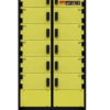 Szafka LOX12 to ognioodporna konstrukcja składająca się z 12 oddzielnych szafek, każdej wyposażonej w zamki szyfrowe oraz gniazda elektryczne do ładowania akumulatorów.
