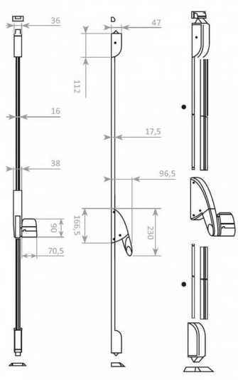 Dzięki uniwersalnej konstrukcji zestaw może być stosowany zarówno w drzwiach lewych, jak i prawych. Dostępne są dwa warianty: do drzwi o wysokości 2450 mm oraz 3100 mm.